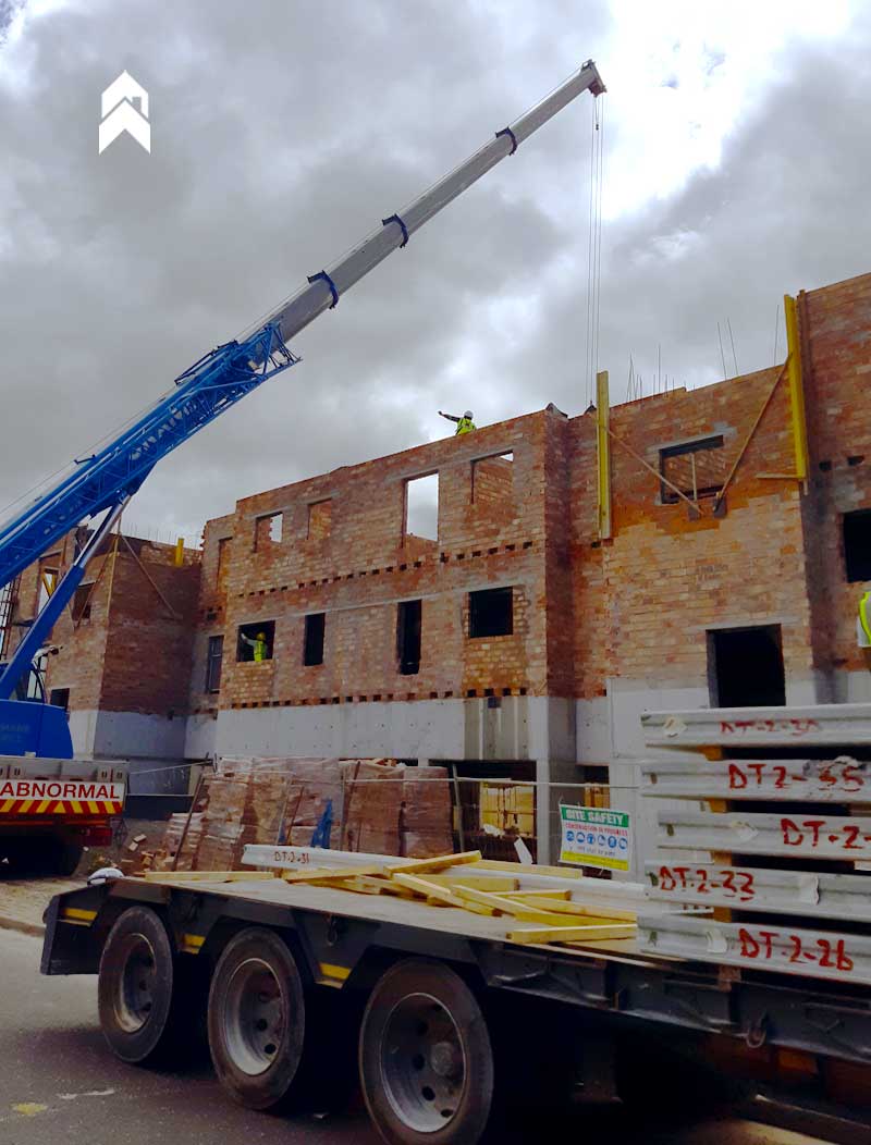 The job took 3 installation days per level. Once the first level of 750m² of hollow-core slabs were installed, the builder would continue to build the brickwork and within 2 weeks, the next level had been installed and the job completed.
