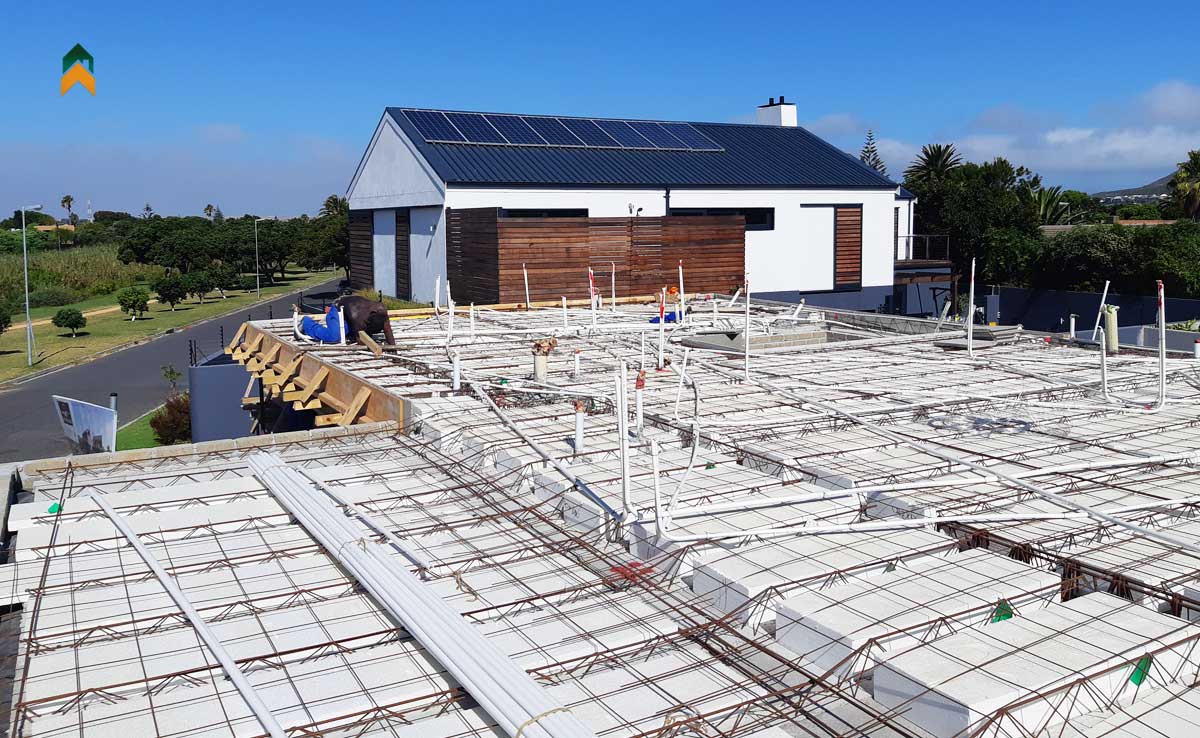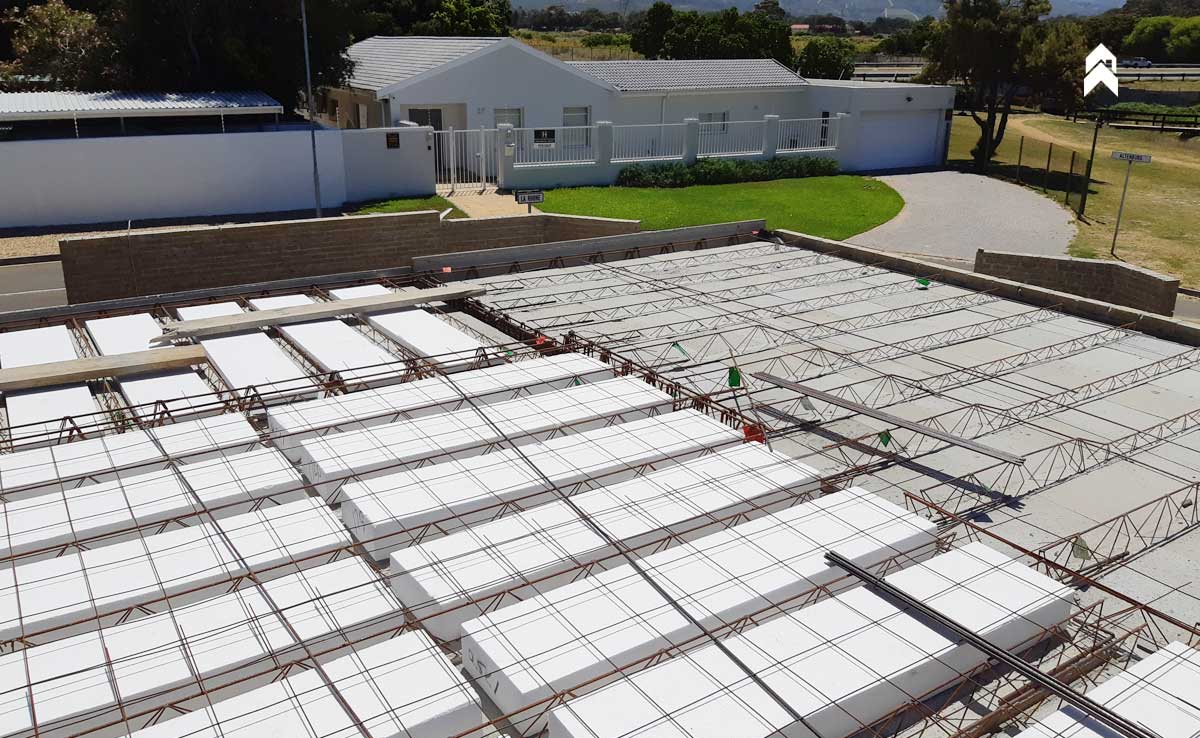 This client had purchased a cobute decking system, which is similar to rib and block slabs – The difference being that the cobute precast slab is an interlocking system with three elements, namely: precast lattice ribs, precast panels and polystyrene blocks. The ribs, supplied with a concrete shutter, are heavier than rib and block slabs to lift and install. Due to knowledge of concrete decking and rib and block slabs, Level Up assisted with installation.
