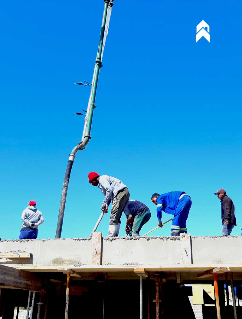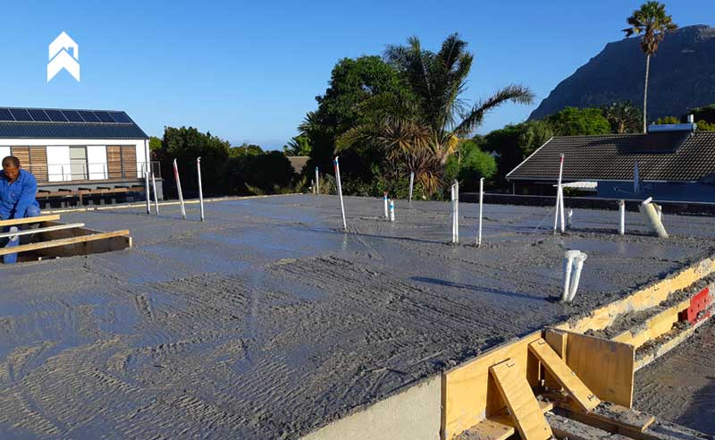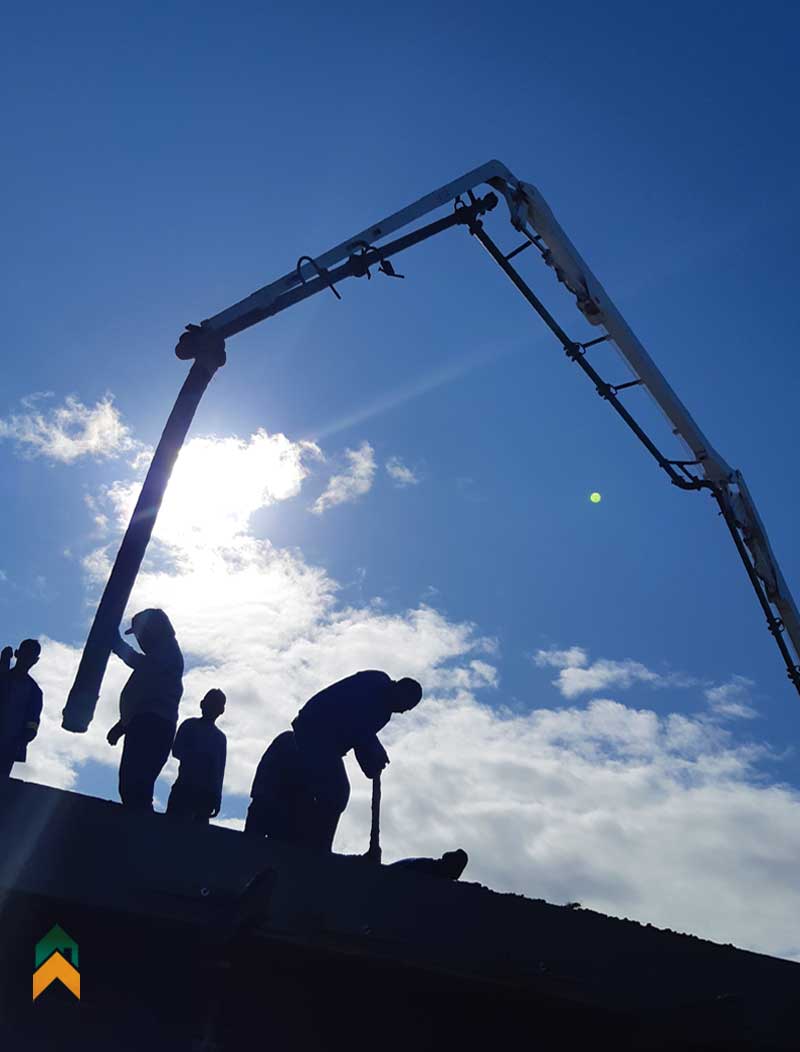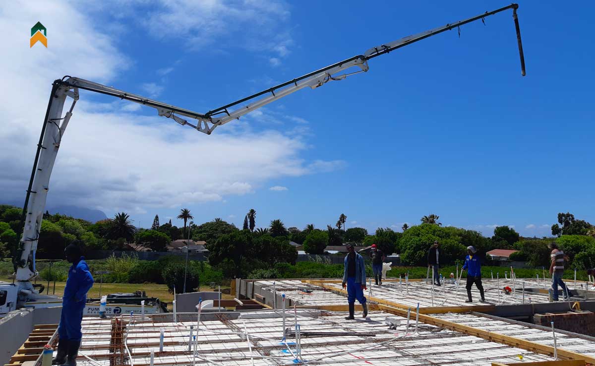 In this case, 250m² of slabs were installed including props and scaffolding. Additional shuttering and steel rods were supplied and installed. Additional steel had been laid at appropriate areas, and as per the pics, ready mix concrete and a concrete pump had been used to cast concrete.